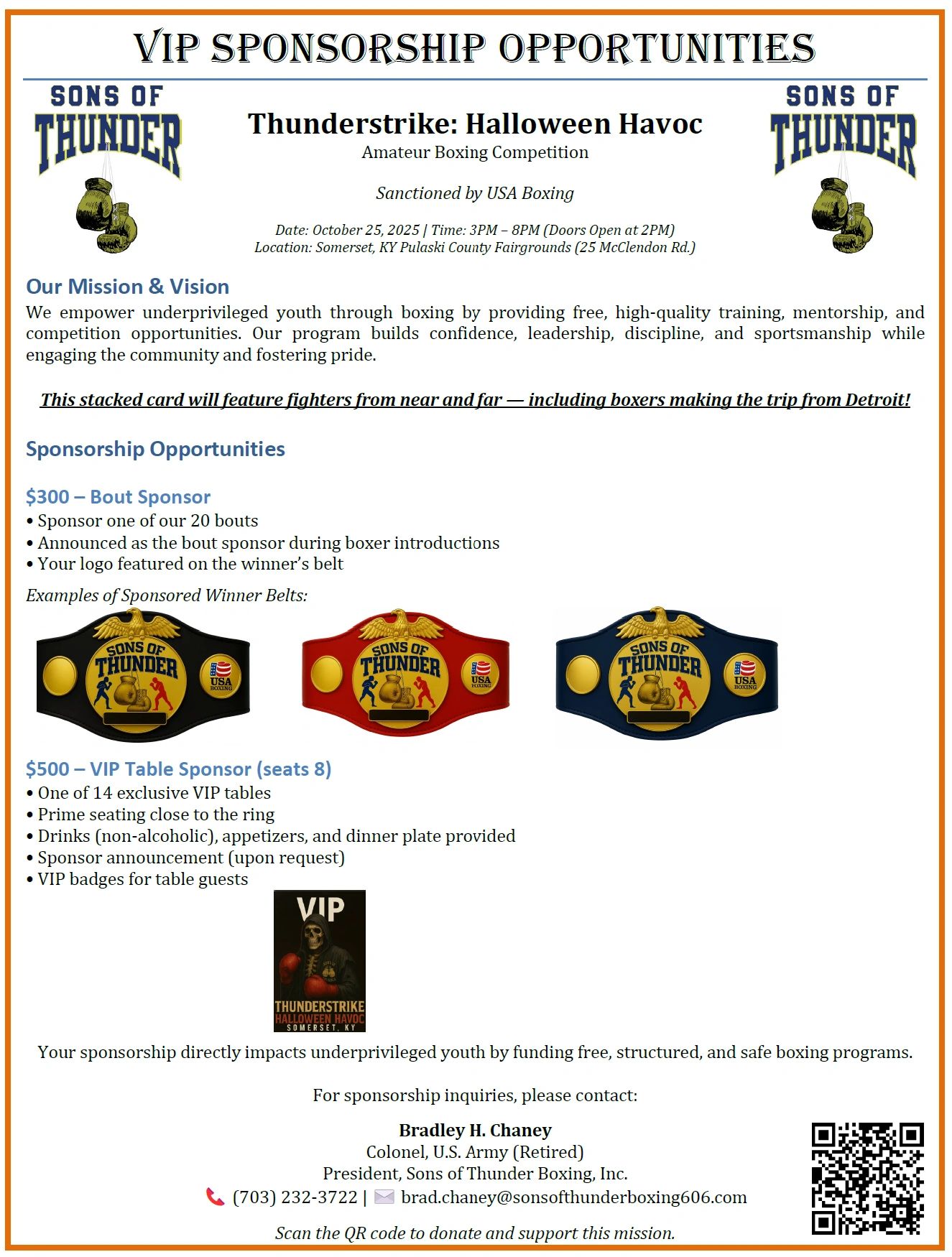 Looking for an opportunity to support the youth within your community. LOOK NO FURTHER. This event will provide boxers from within Pulaski County and surrounding areas the opportunity to display their boxing skills and fitness.